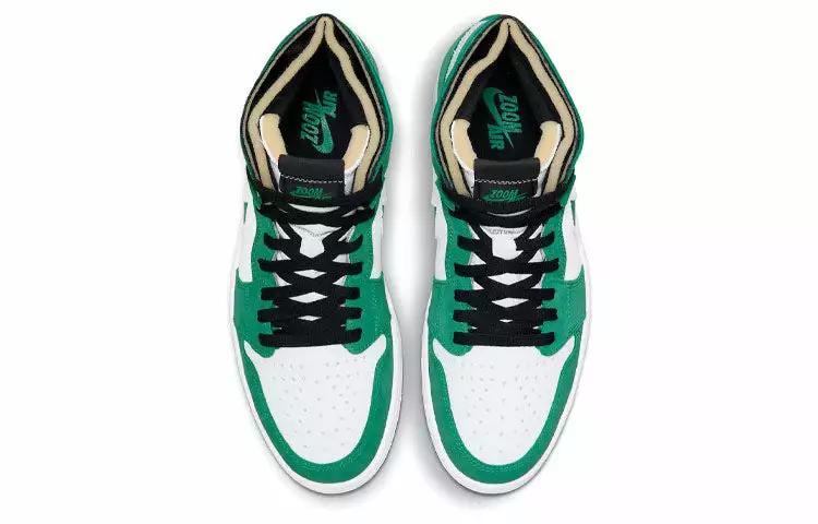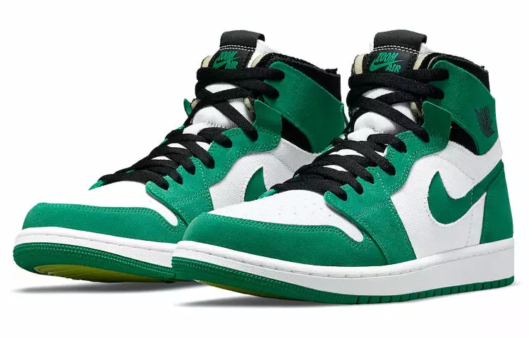 Air Jordan 1 Zoom Air CMFT “Stadium Green” uses the green suede on the upper and the “Nike” smoosh while the profiles and the shoebox features a white base with a low-key strip pattern.